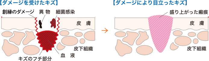 キズの種類や大きさによらず、ケガをすると必ず傷あとが残ってしまいます。傷あとを少しでも目立たないものにするためには、適切な初期治療を行うことが重要です。